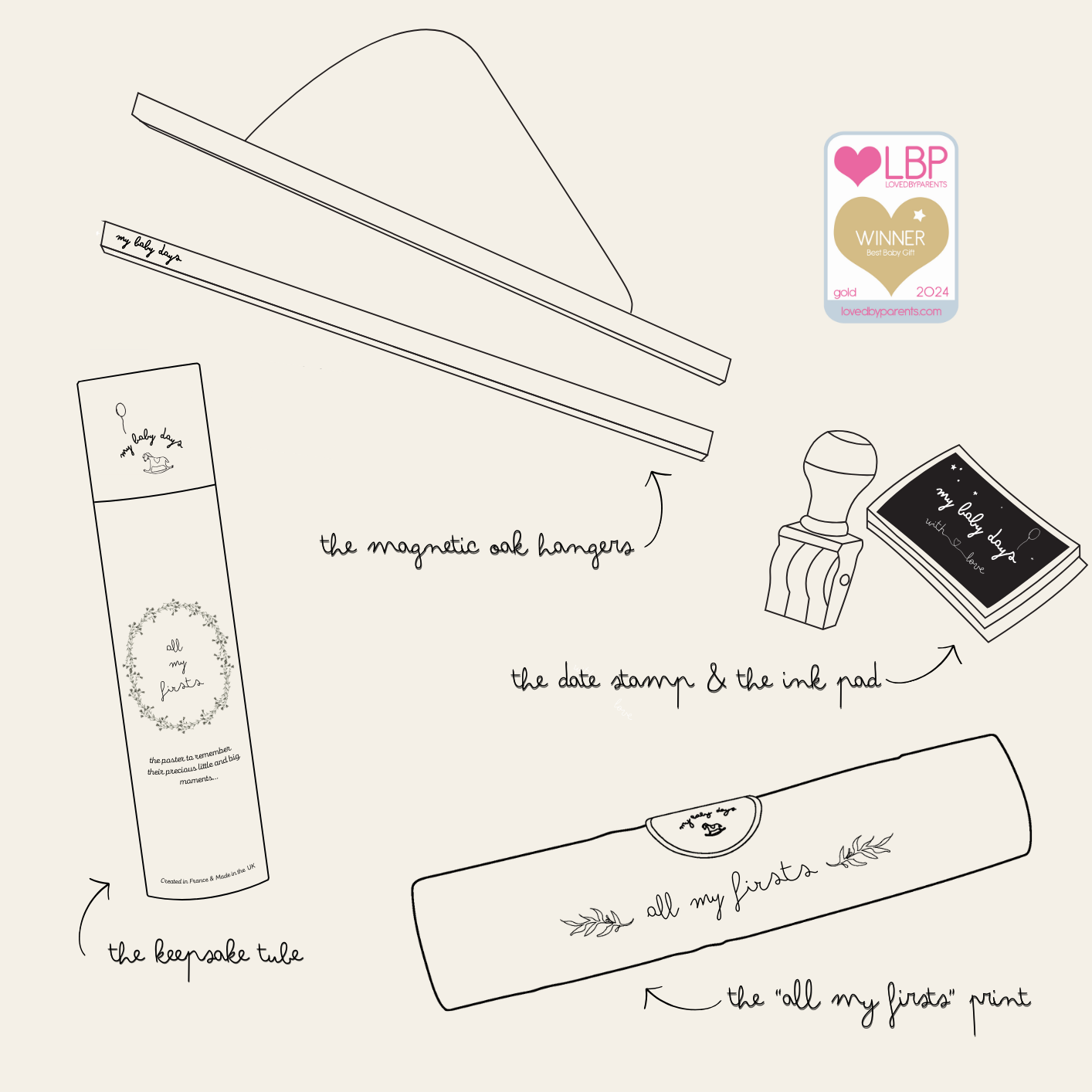 This 'All My Firsts' print is A3 sized (29.7x42 cm), printed on thick 300gsm watercolour style paper and depending on chosen version comes with: